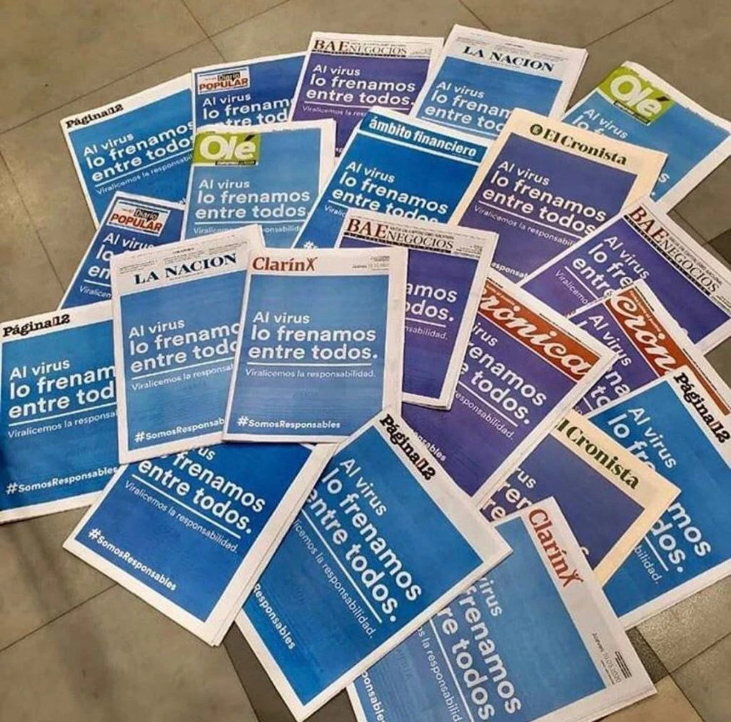 Bajo el lema "Al virus lo frenamos entre todos", los principales medios gráficos del país se sumaron a la campaña global por un periodismo responsable a la hora de informar sobre la pandemia del Covid-19.