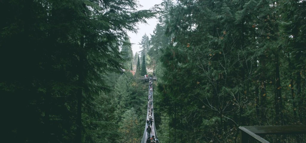 La pasarela cuelga sobre el río Capilano y está rodeada de altos pinos ofreciendo vistas panorámicas alucinantes de la flora y fauna del lugar.