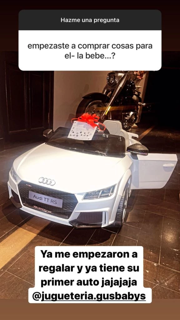 "¿Empezaste a comprar cosas para el/la bebé?", le consultó un seguidor, a lo que Barby le respondió con una foto del obsequio: "Ya me empezaron a regalar, y ya tiene su primer auto jajaja".