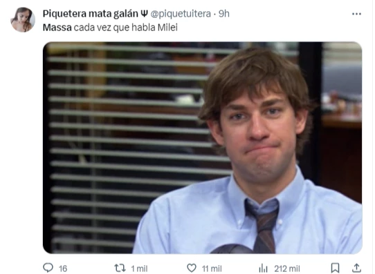 También están los famosos que tomaron las circunstancias con algo de humor, como Nati Jota. "Por sí o por no, ¿gustás de mí?", parodiando la pregunta de Massa que terminó conquistando la noche.