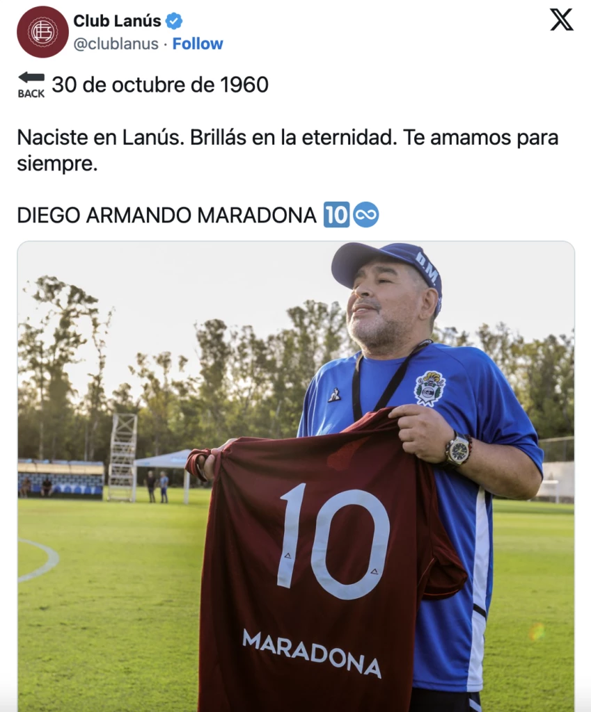 Lanús, Newell's Old Boys y Boca Juniors, fueron de los primeros clubes argentinos que se pronunciaron por el natalicio del astro argentino que falleció el 25 de noviembre del 2020.