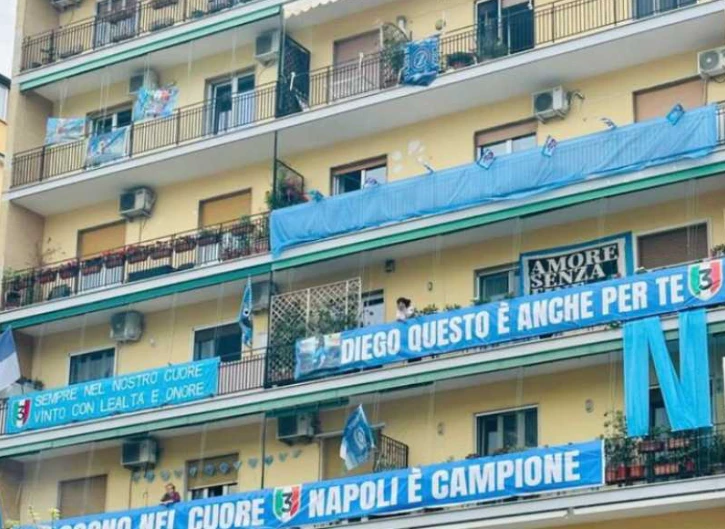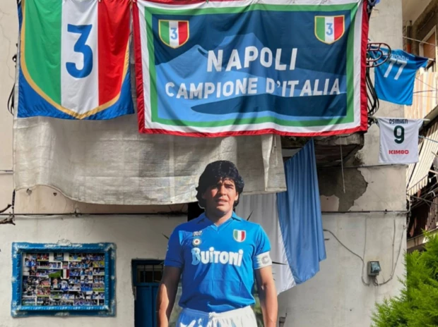 Previo a eso, las calles de Nápoles, Italia, se prepararon con anticipación para festejar uno de los logros más importantes del club y, como no podía ser de otra forma, sumaron como "amuleto" a Diego Armando Maradona (1960-2020).