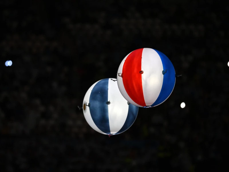 Hasta que quedaron las finalistas: la pelota argentina y la francesa se elevaron y volaron por todo el estadio, gracias a un sistema similar al de los drones.