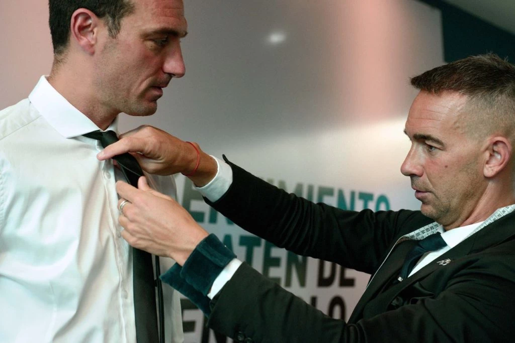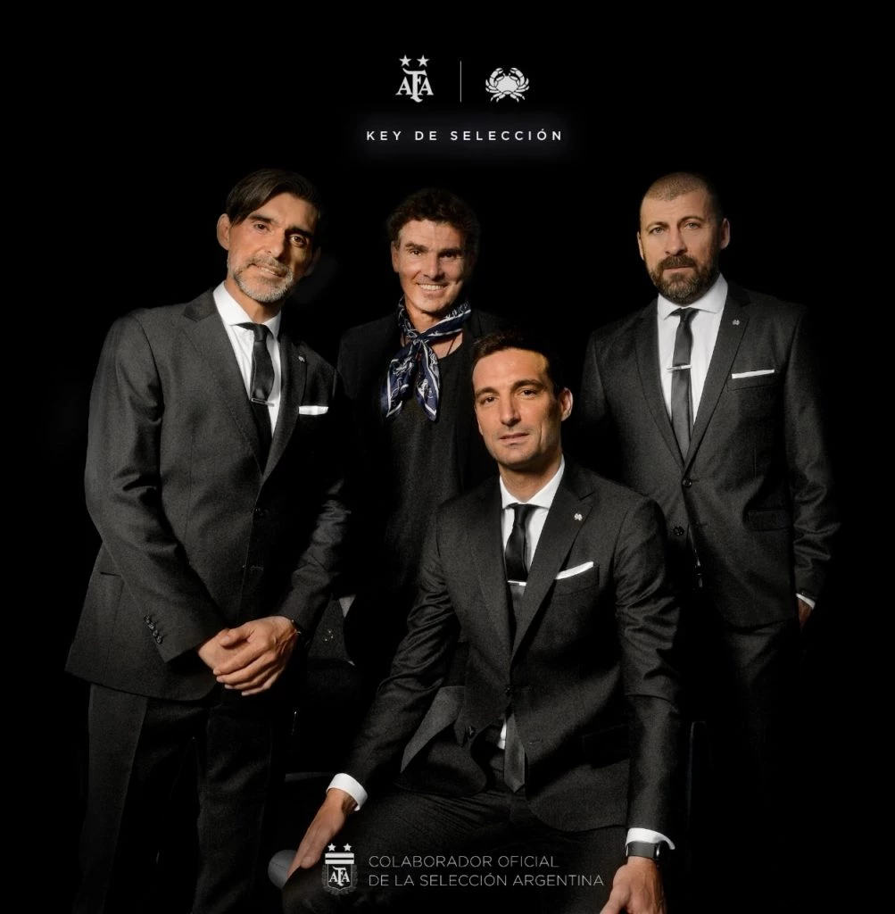 Es que no solamente fue Scaloni quien va a estar presente en Doha para presenciar el sorteo, sino que también el resto de la delegación también va a contar con su traje a medida por parte de Nico Cuño.