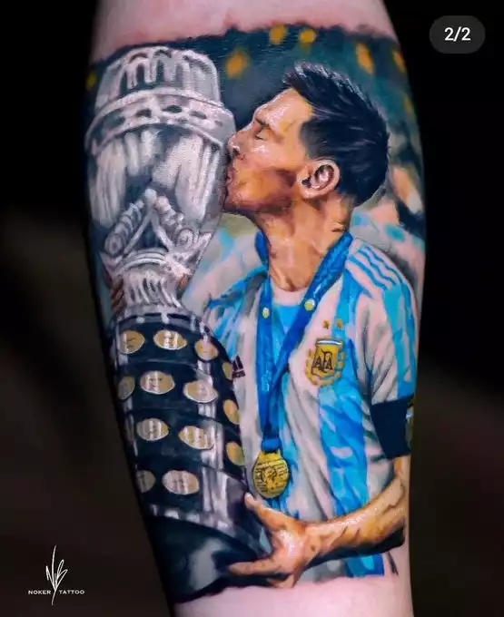 A tal punto que Di María y Leandro Paredes se tatuaron la imagen de la Copa, al igual que lo hicieron cientos de hinchas albicelestes. En Twitter, miles de usuarios compartieron las fotos de sus tatuajes y el más requerido fue el momento en que Messi besó la copa.