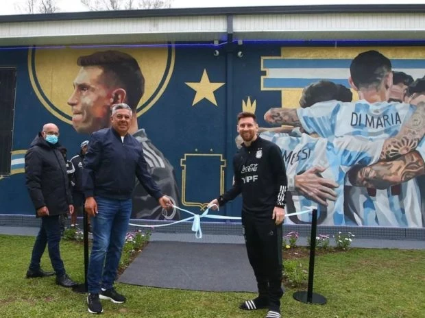 En la previa del partido de local contra Perú por las Eliminatorias Qatar 2022, Lionel Messi junto a sus compañeros inauguraron un mural conmemorativo tras las obtención de la Copa América meses atrás.
