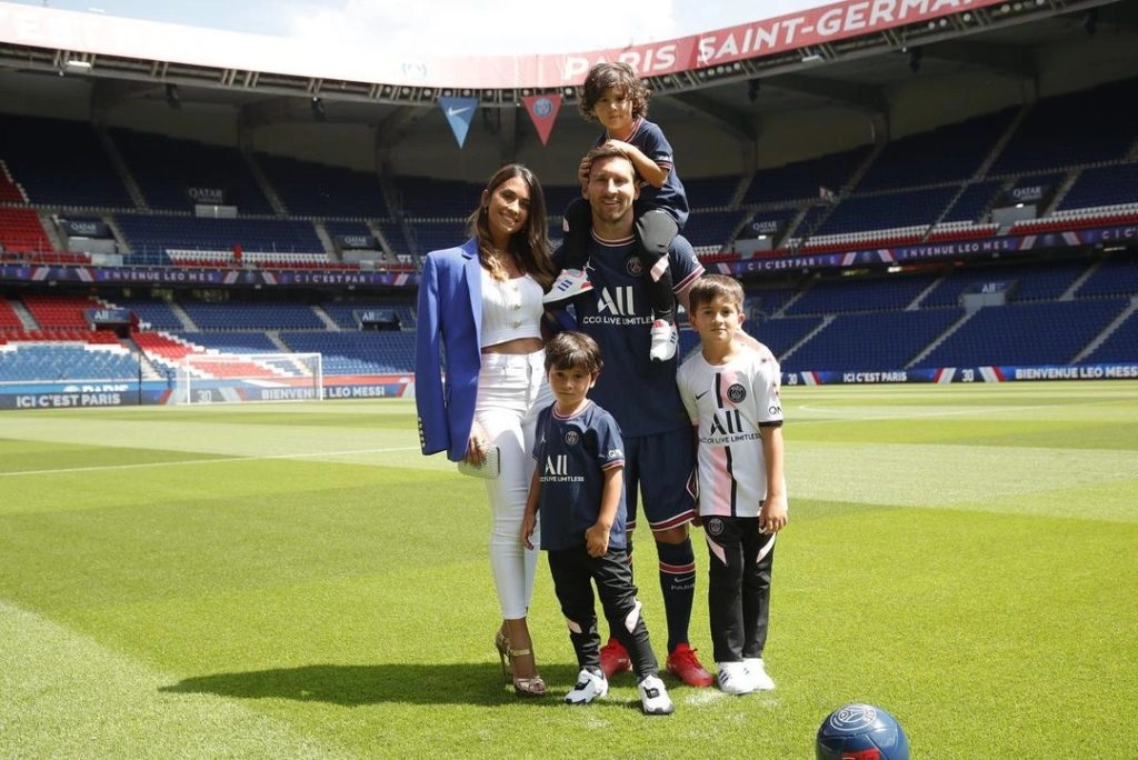Tampoco podía faltar la imagen con su esposa, Antonela Roccuzzo, y sus tres hijos Mateo, Thiago y Ciro Messi en el centro del campo de juego de su nuevo club donde seguramente gritarán varios goles y disfrutarán del las gambetas de su papá.