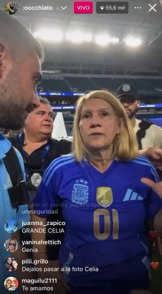 Cuando la madre del famoso futbolista se estaba yendo, ambos aprovecharon para pedirle si los ayudaba a pasar, para acercarse a saludar a Messi. Para sorpresa de todos, Celia no dudó un minuto y los ayudó a pasar por la zona de seguridad alrededor del futbolista. "¡Celia nos hizo pasar! Sos una genia", comentó emocionado Occhiato.