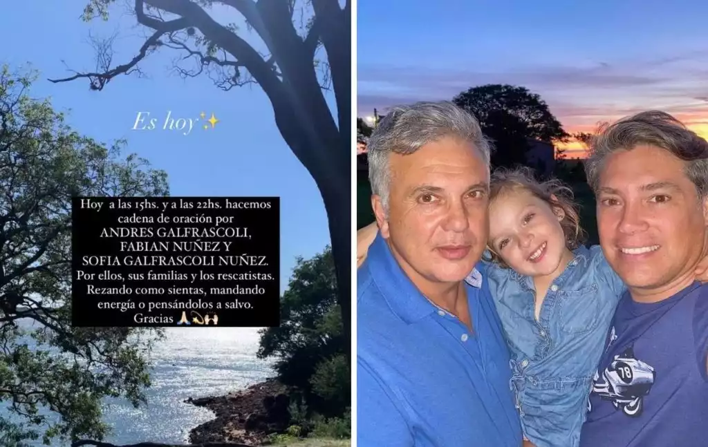 Además, Julia inició una cadena de oración: "Hoy a las 15 y a las 22 hacemos cadena de oración por Andrés Galfrascoli, Fabián Nuñez y Sofía Galfrascoli Nuñez. Por ellos, sus familias y los rescatistas. Rezando como sientas, mandando energía o pensándolos a salvo. Gracias", pidió.