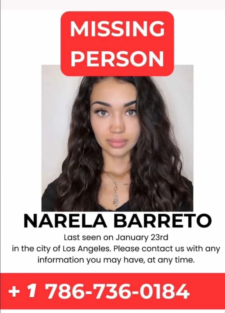 “La familia se encuentra desesperada. Hace 5 días que Narela Barreto no aparece. Última información conocida: fue vista por última vez cuando se estaba tomando un Uber desde Los Ángeles hacia Las Vegas", expresaron desde su entorno.