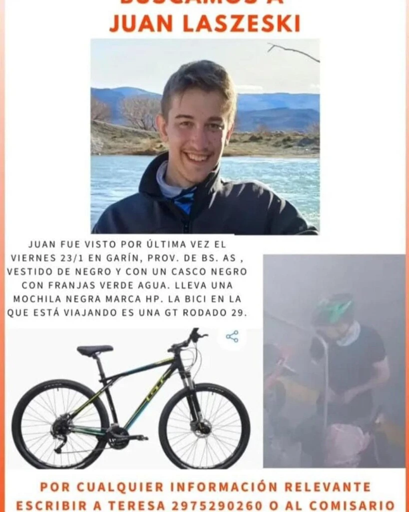 La angustia creció con el correr de las horas y ya lleva varios días sin respuestas. Desde el 23 de enero, la familia de Juan Laszeski busca desesperadamente al joven de 21 años que salió de su casa en Vicente López en bicicleta y nunca volvió a comunicarse.
