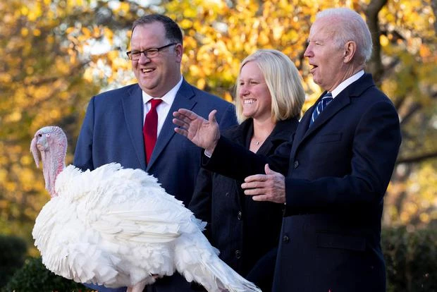 La particularidad de este año, fue que fueron dos en lugar de uno los pavos perdonados por el presidente de los Estados Unidos, Joe Biden, quien debió bautizarlos: Peas y Carrots.