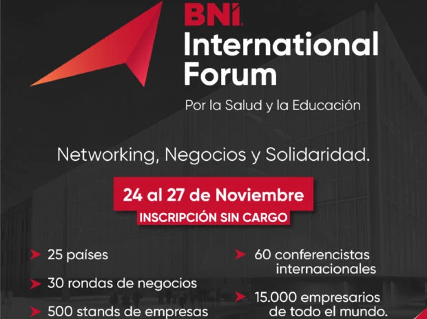 BNI (Business Network International), la organización de networking más grande del mundo, que provee un soporte positivo y estructurado para intercambiar referencias de negocios, organiza el primer BNI International Forum en beneficio de la salud y la educación. Será un evento global 100% virtual, que se llevará a cabo entre el 24 y el 27 de noviembre y propone reunir a empresarios y emprendedores de más de 25 países.