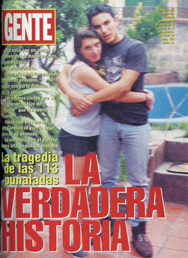 El crimen de Carolina Aló, de 17 años, ocurrió el 27 de mayo de 1996 en casa de la familia Tablado, en Tigre. Estaba de novia con Fabián Tablado (hoy 43, por entonces de 20). Asistían juntos a la secundaria nocturna de la Escuela 1 Marcos Sastre, de esa ciudad del Conurbano. Aquel día, alrededor de las 22, la pareja salió de clase antes de hora. Allí, de acuerdo a lo que declararía luego el femicida, tuvieron relaciones sexuales e iniciaron luego una discusión por celos que derivó en el asesinato. Según lo que se pudo reconstruir, Tablado persiguió a Carolina por distintos lugares de la casa –escaleras, cocina y garaje– y la mató de 113 puñaladas, aplicadas con cuatro armas blancas halladas en la escena: una cuchilla de cocina, dos cuchillos de mesa Tramontina y un formón de carpintería.