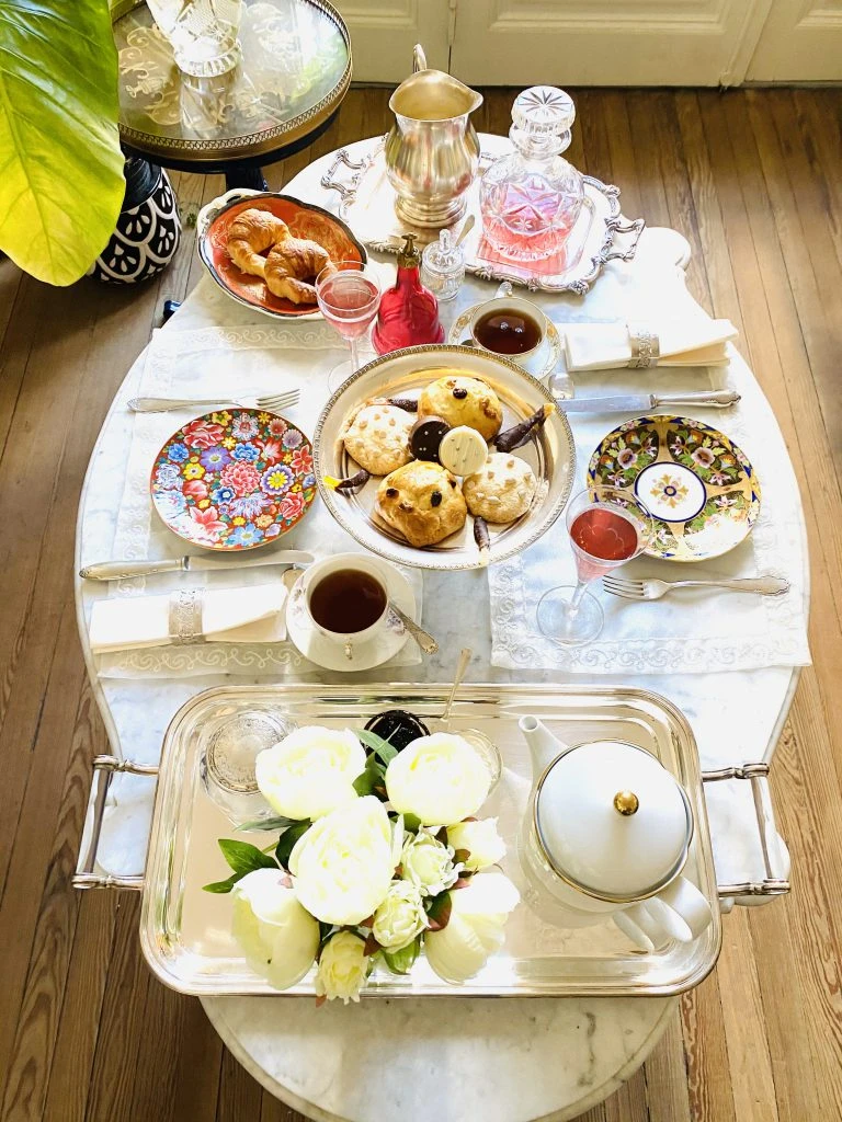 “En un botellón de cristal tallado le serví un vino rosado que a ella le encanta, para tomar después del five o’ clock tea, y elegí una tortera de plata con scones, cookies y vajilla de un anticuario”, cierra.