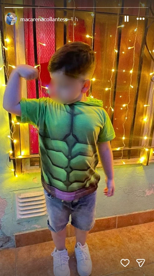 La historia publicada por Macarena Collantes no necesita explicación. La imagen del nene vestido de Hulk, con el gesto de fuerza, recorrió redes y grupos de WhatsApp como un símbolo de la pelea que sigue dando el chiquito desde una cama de hospital.