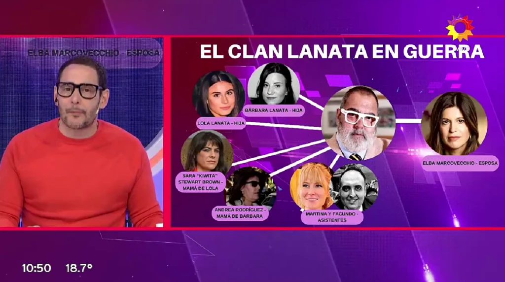 "Ha decidido que justamente, Bárbara Lanata tiene el mismo poder que Elba Marcovecchio para poder firmar internaciones, traslados, intervenciones... Todo lo que pase con la salud de Lanata, deberá ser firmado en partes iguales por Elba Marcovecchio, la esposa del periodista, y por su hija mayor, Bárbara. Ahora Elba va a tener que consensuar con las hijas", afirmó el conductor.