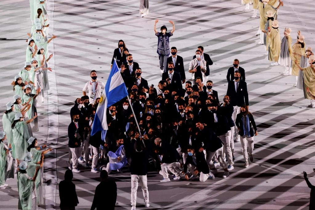 Este viernes se iniciaron de manera oficial los Juegos Olímpicos de Tokio 2020 con su ceremonia inaugural en el Estadio Nacional de Tokio. A las 8:43, hora de la Argentina, apareció la bandera argentina que alzaron Cecilia Carranza y Santiago Lange, quienes encabezaron la delegación albiceleste en el Estadio Nacional.