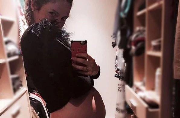 "El embarazo es el mejor estado del mundo... ¡Una esta haciendo una persona adentro! Con todo lo que eso implica, cambio corporal, retención de líquidos, taquicardias, cuesta dormir... pero sin duda es el acto de amor y el milagro mas lindo de la vida... Me siento plena, entregué mi cuerpo para hacer un bebe sano, fuerte! Todo muta, cambia, pero luego vuelve a su lugar con esfuerzo y amor! Pueden Quedar marcas, pero son sellos de amor que dejan nuestros hijos en el cuerpo ... Hay que disfrutar y dejar de lado un poco lo estético, no a todas les atraviesa de la misma manera un embarazo... No todos los cuerpos reaccionan igual... MUCHO AMORRRRR!!!! MAS AMOOOOORRRRRR".