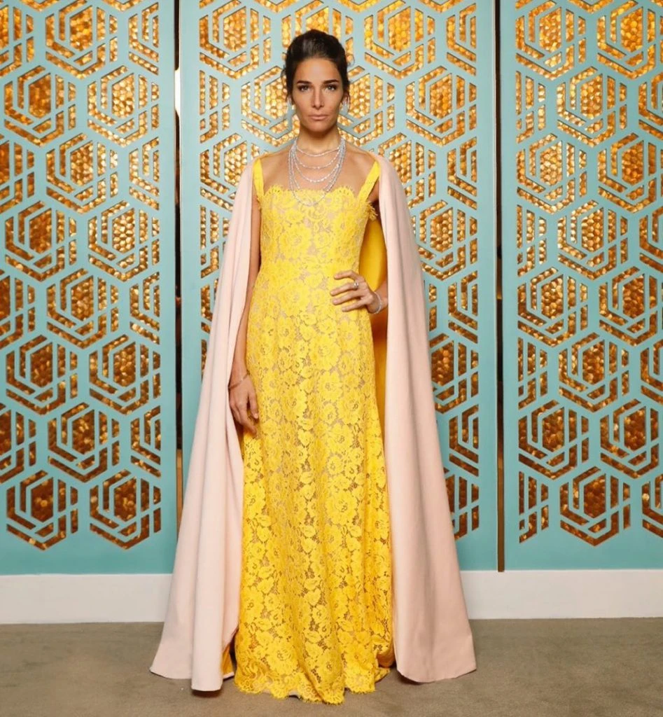 En 'La Noche de Mirtha', Juana Viale deslumbró con un vestido de princesa color amarillo con una capa rosa.