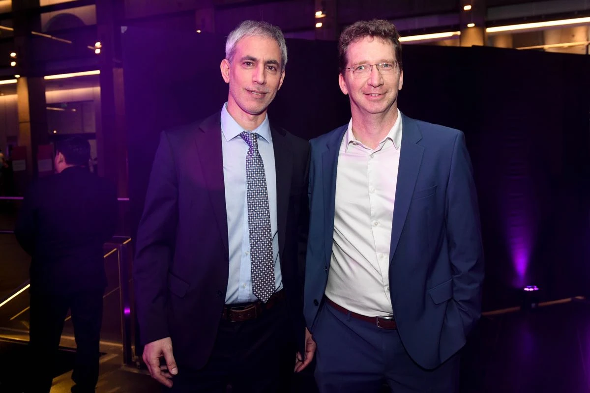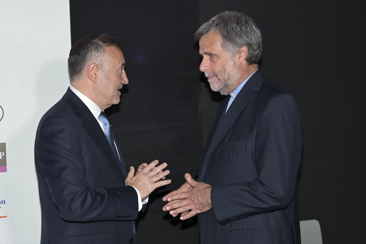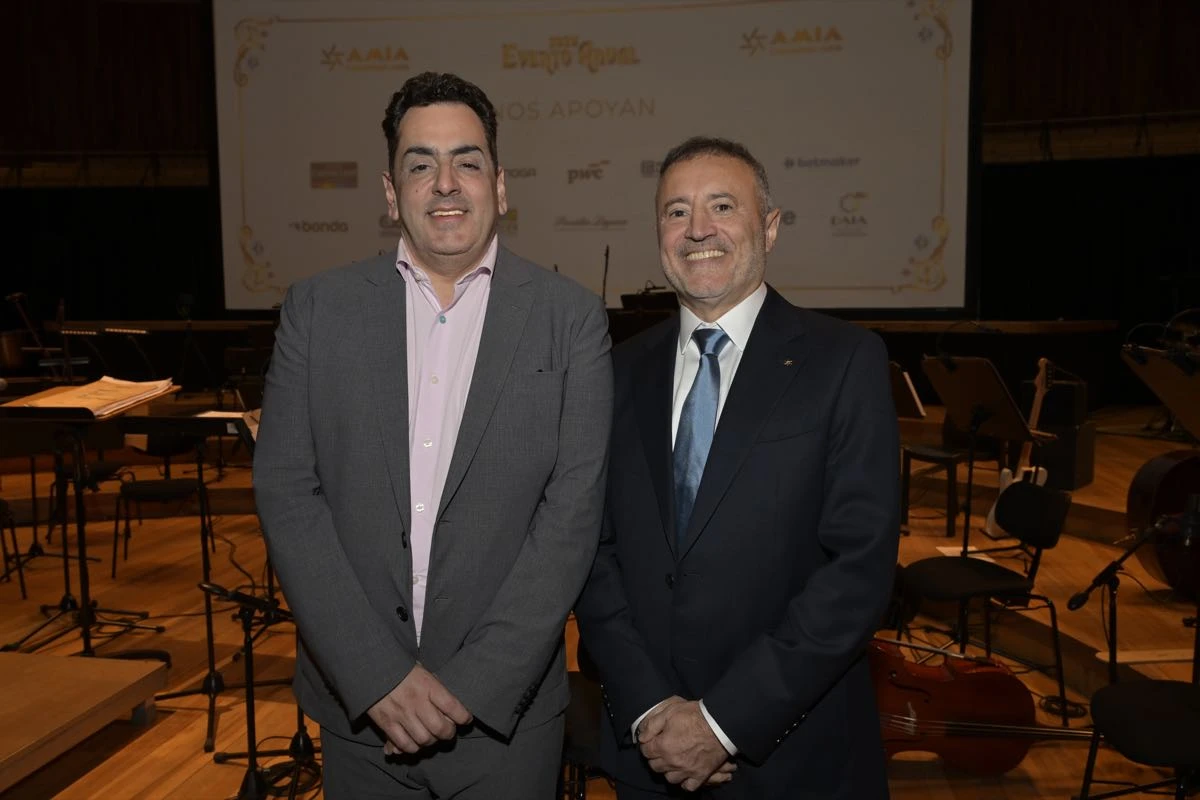 Leonardo Cifelli (secretario de Cultura de la Nación) junto al presidente de la AMIA, quien señaló: "Esta noche honramos la capacidad de mantener viva la llama de la identidad, la solidaridad y el compromiso con la vida, creyendo siempre en la construcción de un futuro mejor".