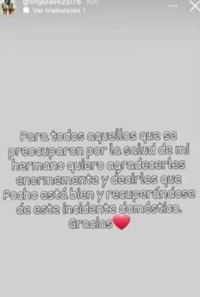Diego Lavezzi fue uno de los primeros del círculo íntimo del Pocho en hablar respecto a su salud. En un comunicado que publicó en sus redes sociales había declarado: “Para todos aquellos que se preocuparon por la salud de mi hermano quiero agradecerles y decirles que el Pocho está bien y recuperándose de un incidente doméstico. Gracias”