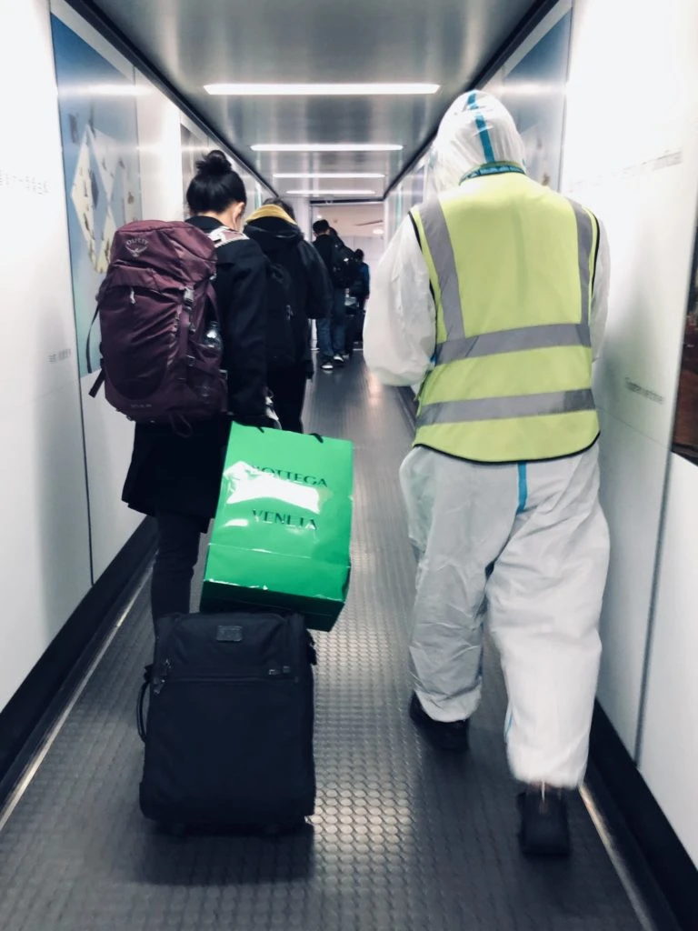 Pero la historia no acaba ahí. "Al poner un pie en el aeropuerto, te das cuenta de que has aterrizado en otro planeta. Absolutamente todo el personal del aeropuerto viste con traje protector, capucha y escudo facial incluidos", cuenta, sorprendido por la vestimenta de los operarios y el cuidado con el que se llevan a cabo los sucesivos protocolos de ingreso.
