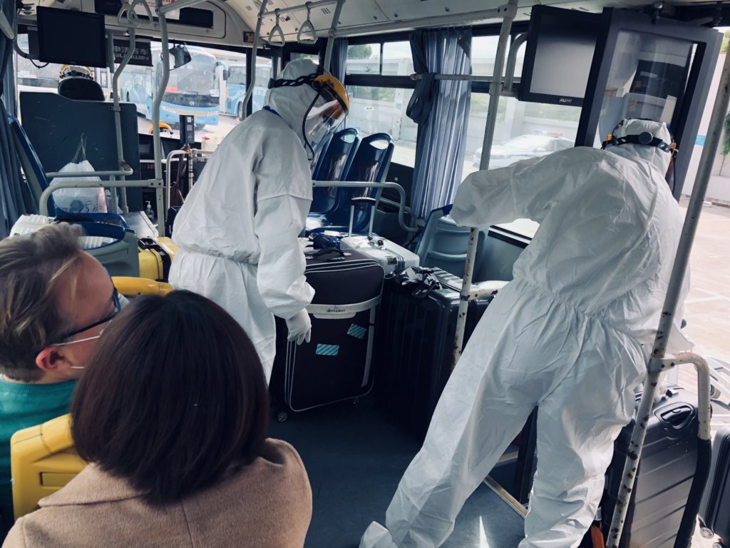 Luego llega el momento de recoger el equipaje y nuevamente los pasajeros son divididos en grupos pequeños. "Recogida la maleta, nos van separando por grupos para enviarnos a un hotel, donde haremos la cuarentena. Por si os lo estáis preguntando: sí, el hotel lo paga el viajero. Y no, no lo elige él. Y sí, todo el mundo tiene que hacer cuarentena vigilada, tanto chinos como extranjeros".