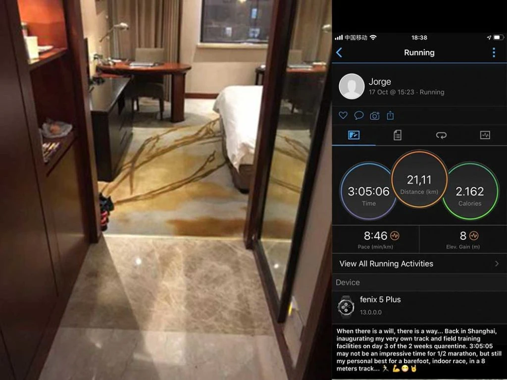 "Cada uno aprovecha el tiempo lo mejor que puede. Mi amigo Jorge, deportista redomado, se vio en la misma situación hace apenas unas semanas y el tío se hizo una media maratón en los 8 metros de pasillo con los que contaba en su habitación. When there is a will, there is a way", sostiene en su hilo de tuit el español.