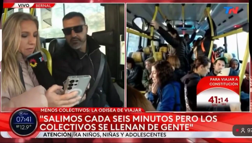 El objetivo del móvil era reflejar el impacto de la medida de fuerza en los usuarios del transporte público, en medio del reclamo por el pago de salarios a los choferes. Sin embargo, lo que parecía una cobertura habitual tomó un giro inesperado cuando Bernini decidió subirse a un colectivo para hablar directamente con los pasajeros y mostrar en primera persona las dificultades del servicio.