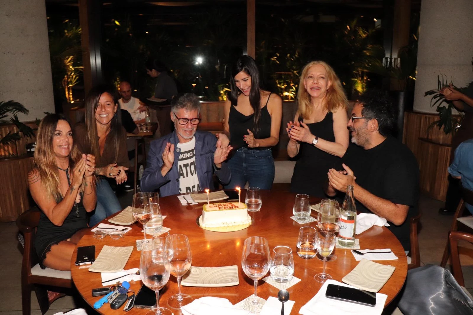 El encuentro reunió a un selecto grupo de amigos y figuras del ambiente artístico y social que se acercaron para acompañar al homenajeado en una noche especial. Entre los presentes estuvieron su pareja y las actrices Cecilia Roth y Andrea Rincón, quienes compartieron la cena en un clima relajado y distendido.