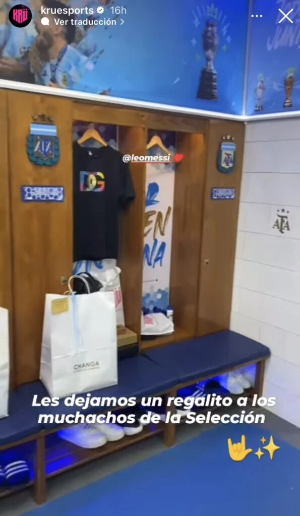 En la previa del amistoso contra Panamá, el Kun mostró, a través de las redes sociales de su equipo de eSports, las bolsitas con regalos que mandó al vestuario a sus ex compañeros.
