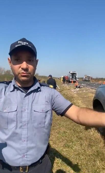 Atento al caos que vislumbraba en toda la zona, Pueblas se sacó el cinturón de seguridad, bajó de su vehículo y se acercó al lugar del accidente. Allí comenzó a filmar el terrible panorama que tenía frente a sus ojos con su teléfono celular y hasta charló con algunos testidos del trágico accidente que terminó con la vida de al menos dos personas.