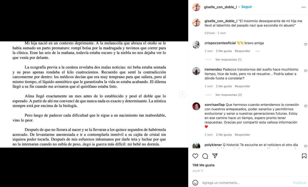 Dando un adelanto en redes sociales de la obra compartió una de las frases más significativas: "El insomnio desesperante de mi hija me llevó al laberinto del pasado nazi que escondía mi abuelo".