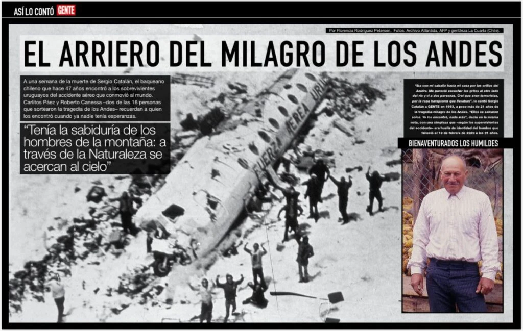 Catalán se encontraba llevando a cabo su rutina diaria y cuidando de su ganado cuando se encontró con dos jóvenes flaquitos del otro lado de un arroyo, quienes a las horas se terminaron convirtiendo en dos de los 16 supervivientes del accidente en el que murieron 29 personas.