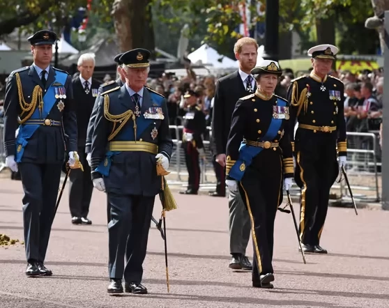 Sobre esa línea, al haber perdido los honores militares que le entregó la Corona –no aquellas medallas ganadas en acto de servicio- y estando fuera ya del Ejército británico, el príncipe Harry no pudo vestir el uniforme militar durante la caminata del cajón de su abuela. De modo que la mayoría vistió uniforme militar durante la procesión del cajón de su abuela, menos el príncipe Harry; su primo Peter Phillips, que no hizo carrera militar; y su tío, el príncipe Andrés, el asunto más espinoso.