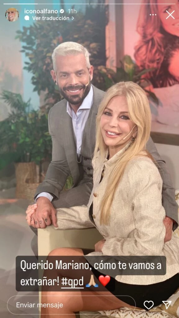 "Querido Mariano, cómo te vamos a extrañar" fue el mensaje que Alfano le dedicó al productor de moda.