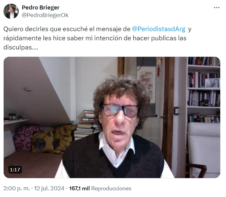 Pedro Brieger utilizó sus redes sociales para compartir un video de casi 1 minuto y medio en el cual se refirió a las acusaciones que recibió en su contra por acoso sexual a 19 colegas. En sus primeras declaraciones, el comunicador tomó la responsabilidad de sus actos, pidió disculpas y aseguró que cambió en los últimos años.