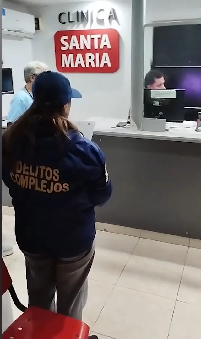 Hay, además, un segundo registro breve que completa la escena desde otro ángulo: un video de 19 segundos que muestra el ingreso de la Policía al lugar en el marco de la búsqueda de una menor embarazada y la posterior constatación de elementos clave de la causa. Aunque son imágenes cortas, su impacto está en lo que sugieren: una clínica bajo la lupa judicial, un operativo que avanza por áreas comunes y privadas, y la sensación de que lo que se busca no es un papel suelto, sino respuestas urgentes.