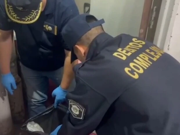 El material audiovisual que circuló en las últimas horas muestra el “detrás de escena” del procedimiento: efectivos de la Policía Bonaerense, identificados como parte de Delitos Complejos, ingresando al edificio durante la noche de este viernes y recorriendo pasillos y dependencias internas. En uno de los tramos más comentados se observa a los agentes revisando un baño y manipulando bolsas rojas cerca del inodoro y el lavabo, en una secuencia que transmite el pulso real de un allanamiento cuando la sospecha ya dejó de ser abstracta y se vuelve búsqueda metódica de evidencia.