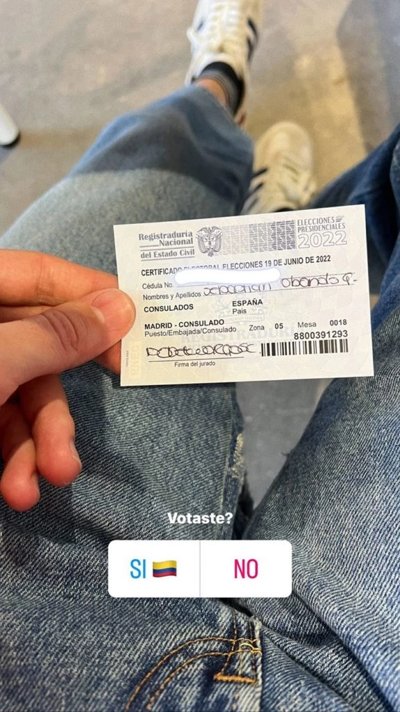 Luego de poder emitir su voto, a través de sus historias de Instagram, red social en la que posee 29 millones y medio de seguidores, continuó hablando sobre la importancia de estas elecciones para Colombia y la necesidad de un cambio estructural, “Colombia, hoy tenemos la oportunidad de decidir el rumbo que queremos para nuestro país. Elige a conciencia. Yo ya hice mi parte, haz la tuya”.