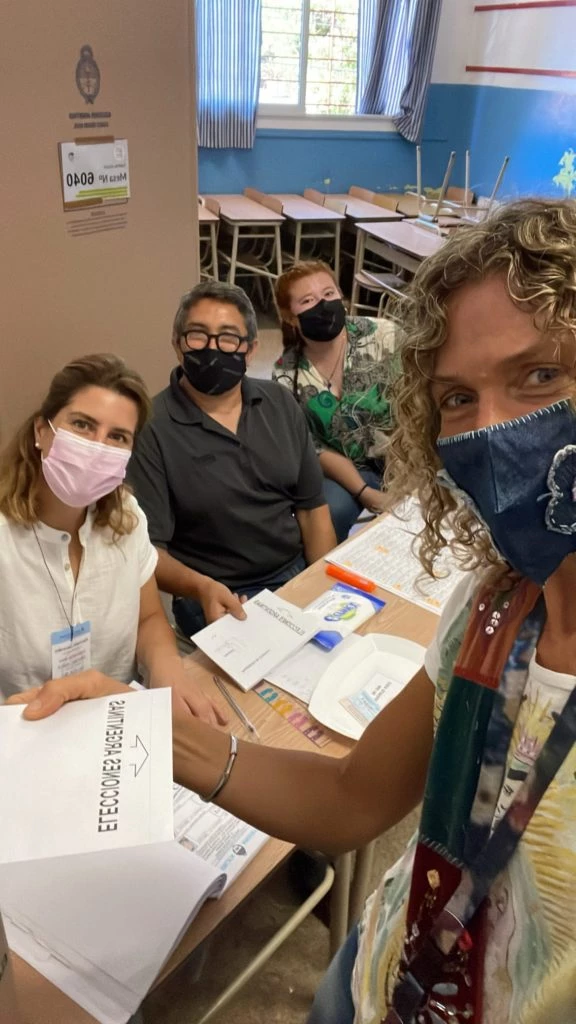 “Soy de los que aman ir a votar. Y sobre todo que quieren ver un país mejor”, exclamó sonriente Federico Bal. El actor decidió fotografiarse no solo cuando introducía el sobre en la urna sino con toda la mesa fiscal que anotó su asistencia puntual alrededor de las 12 del mediodía.