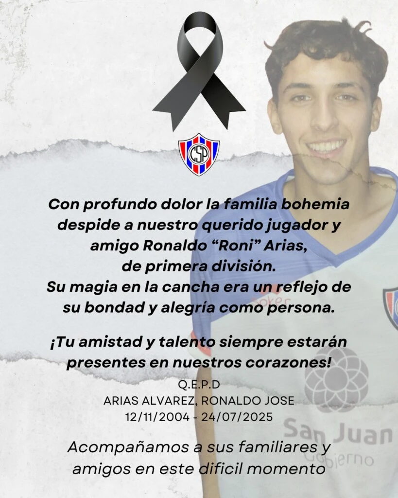 El fútbol sanjuanino atraviesa días de luto. La sorpresiva muerte de Ronaldo Arias Álvarez, un joven futbolista de apenas 20 años, golpeó de lleno a su familia, amigos y a todos los que lo conocieron dentro y fuera de la cancha. La noticia dejó en shock a una comunidad futbolera que aún no logra comprender cómo la vida de una promesa del deporte pudo apagarse de manera tan abrupta.