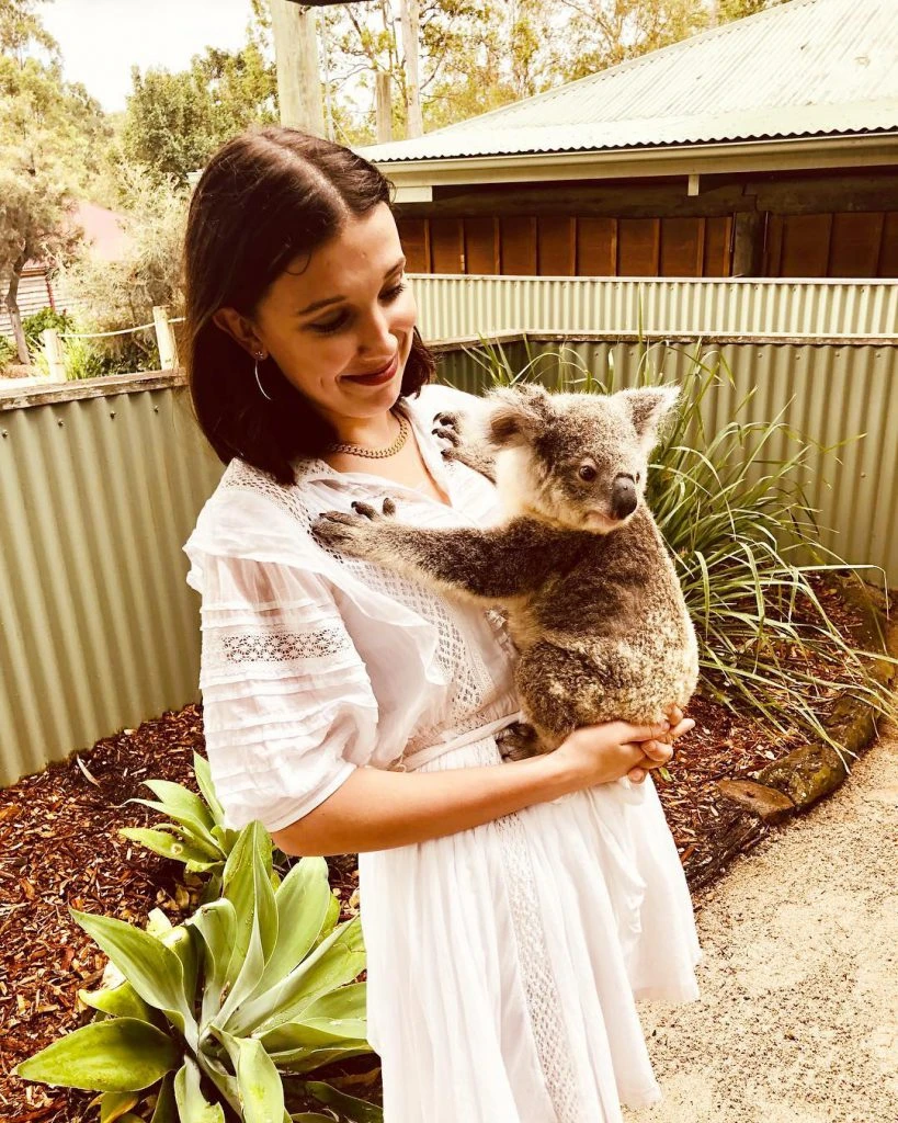 Millie Bobby Brown es otra amante de los animales. Por eso quiso retratarse con este koala y publicarlo en sus redes.