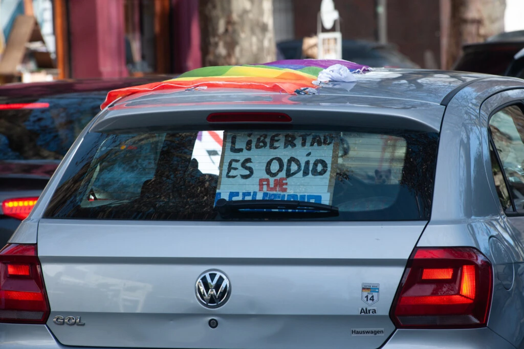 "Lo más triste es que era tarde cuando nos enteramos", se escucha decir a uno de los jóvenes. El clima es gélido y cada tanto los coches frenan. "Hay muchos servicios", dice uno de los que dirige la caravana. Sofía no está nunca sola, la rodean otras mujeres que le acercan agua, la contienen, la abrazan. "Sofía está siendo acompañada por las organizaciones de lesbianas y lesbianes, se han organizado inmediatamente para acompañarla en todo lo que necesite", cuenta Rachid.