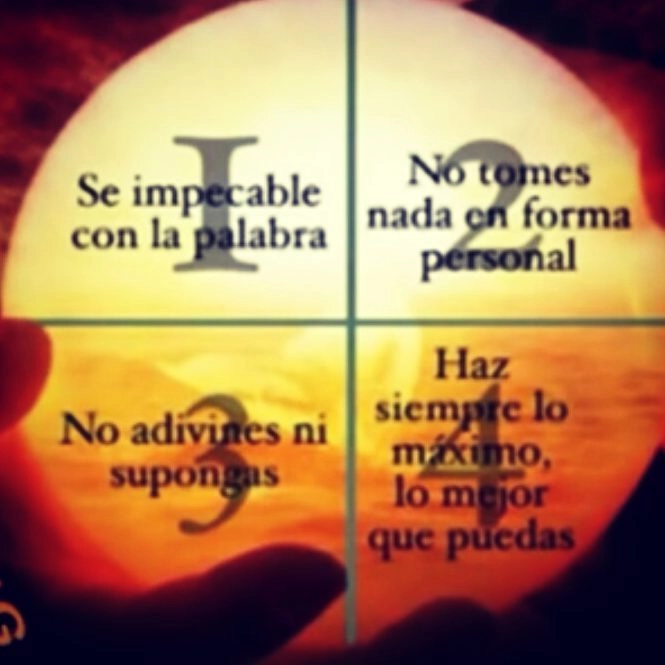 Por otra parte, se inspiró en los acuerdos toltecas: una civilización antiquísima de México que desarrolló acuerdos de vida para vivir más y mejor. En principio fueron cuatro y luego añadieron un quinto: usar impecablemente las palabras; no tomar nada como personal; no adivines ni supongas; hacer el máximo esfuerzo posible; por último sé simple, sé escéptico pero aprende a escuchar.
