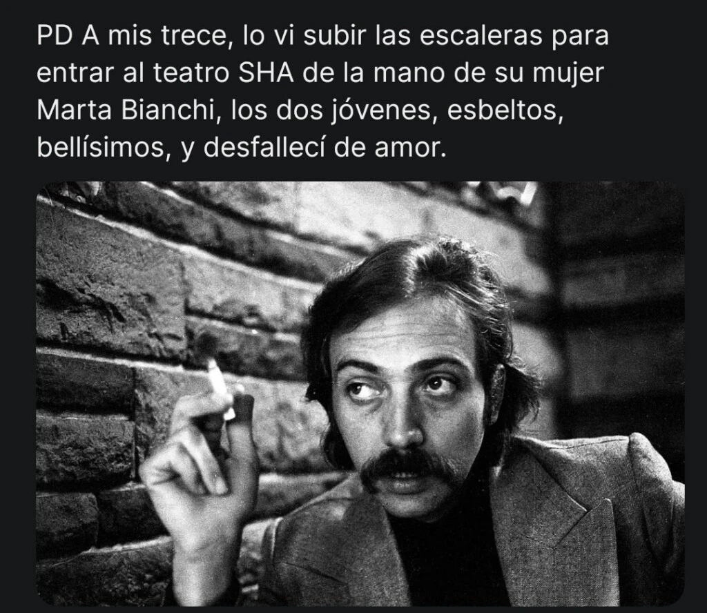 El recuerdo termina en un plano íntimo, inesperado, casi cinematográfico. Lewin evocó la última imagen que conserva de él: “El viejito comunista fabulador de Parque Lezama es lo último que vi de él”. Pero antes de esa escena final hubo otra, mucho más antigua, casi adolescente. “A mis trece, lo vi subir las escaleras para entrar al Teatro SHA de la mano de su mujer Marta Bianchi, los dos jóvenes, esbeltos, bellísimos, y desfallecí de amor”.