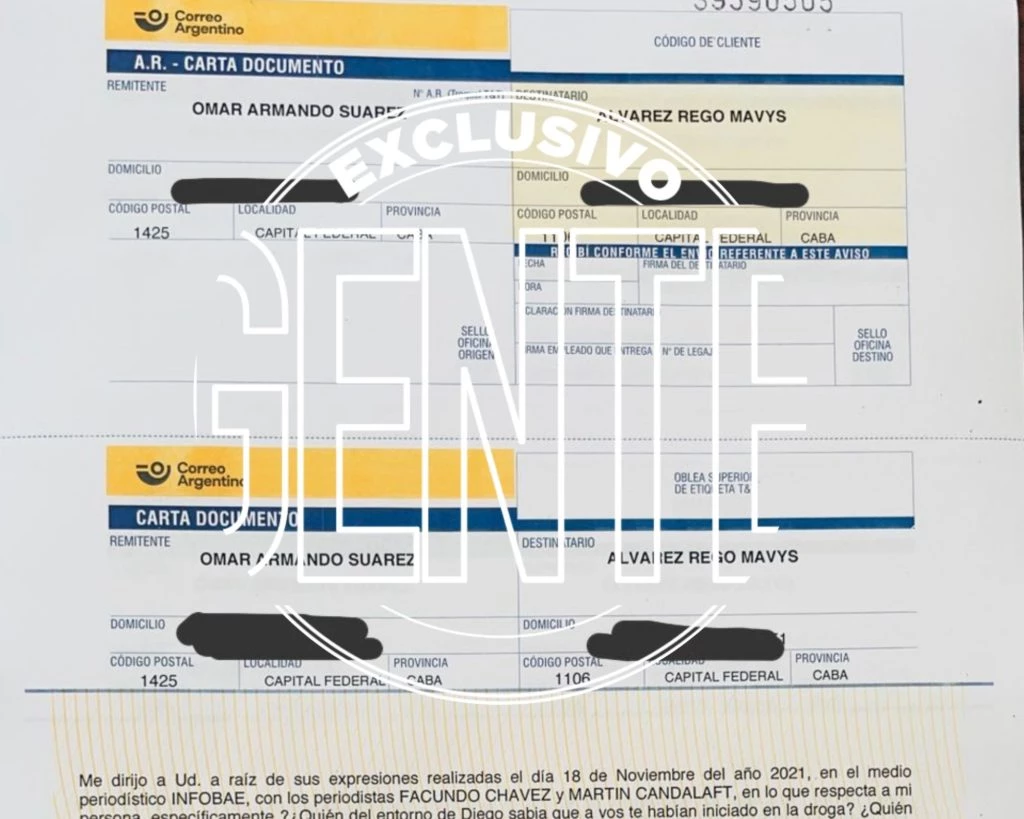 Por varios de sus dichos, Mavys ya recibió una carta documento de parte de uno de los denunciados, el exdueño de “Cocodrilo”, Omar Suárez. A él apuntó en uno de los tramos de su relato, cuando dijo haber sido testigo de una conversación entre el empresario y Mariano Israelit, otro de los amigos del “10”, acerca de “compra y venta de mujeres”.