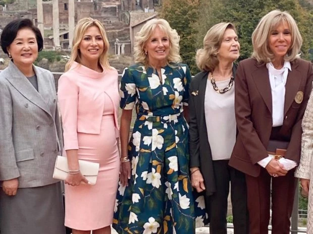 En su encuentro con las primeras damas y compañeras de los líderes mundiales en la cumbre del G20 –entre ellas, su par francesa Brigitte Macron, Fabiola Yáñez deslumbró con un total pink look.