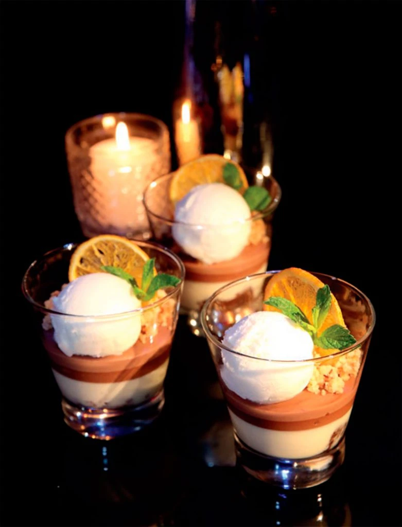 El catering fue de Kiria, bajo el mando del chef Matías Céspedes. El menú contó con una variada recepción, luego un bandejeo de tres mini platos y de postre mousse de chocolate y nutella, crocante de naranja y crema helada.